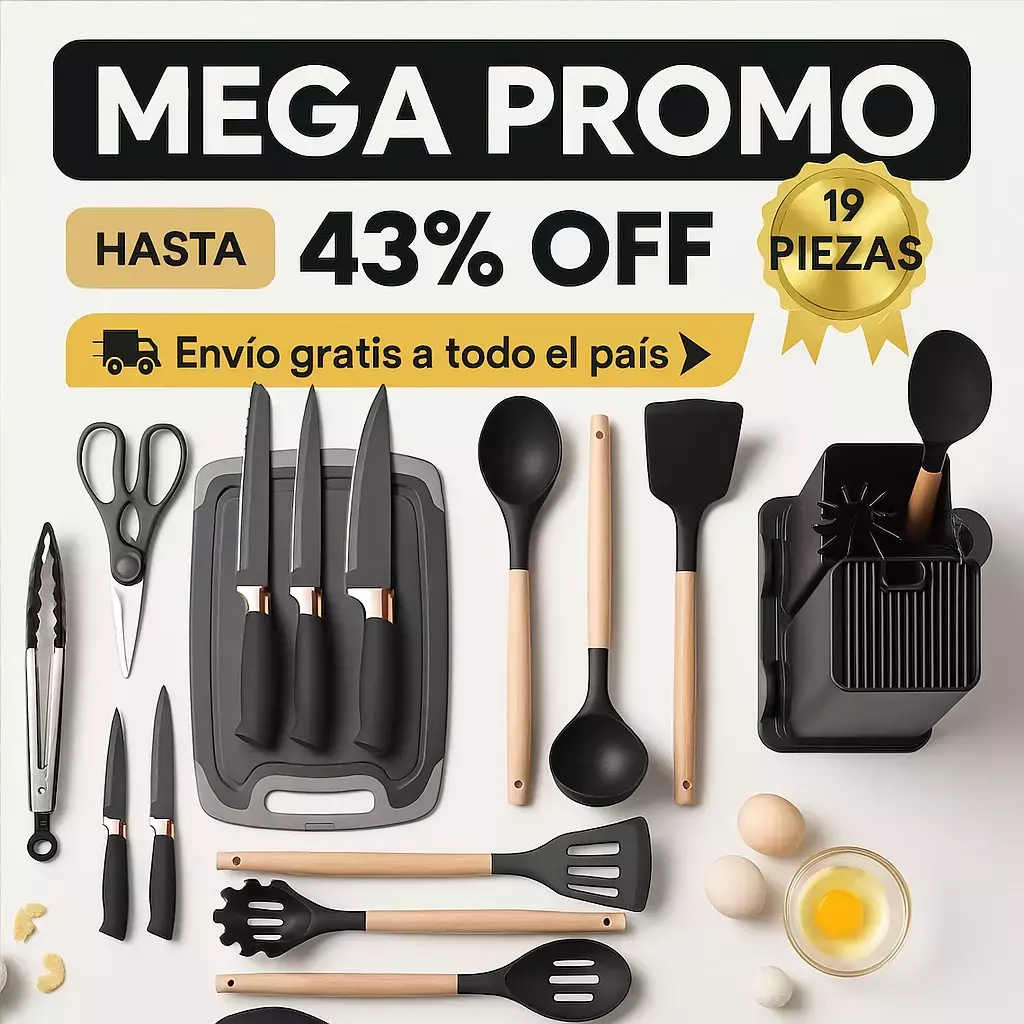 Ya sea que estés empezando en la cocina o quieras renovar tus herramientas, este set lo tiene todo. Además, su diseño moderno combina con cualquier estilo de cocina.